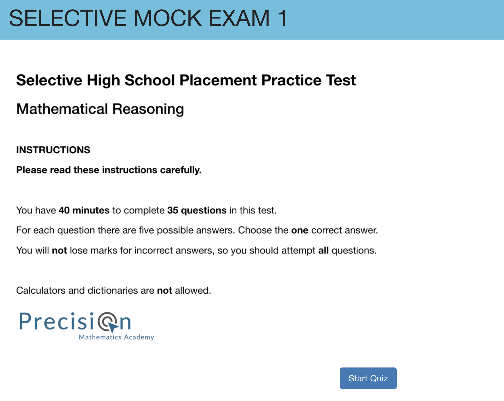 Students are given the opportunity to sit a selective mock exam covering all possible question types and topics that may appear in the selective exam. They are able to re-attempt it as many times as they like and review the full worked solutions.